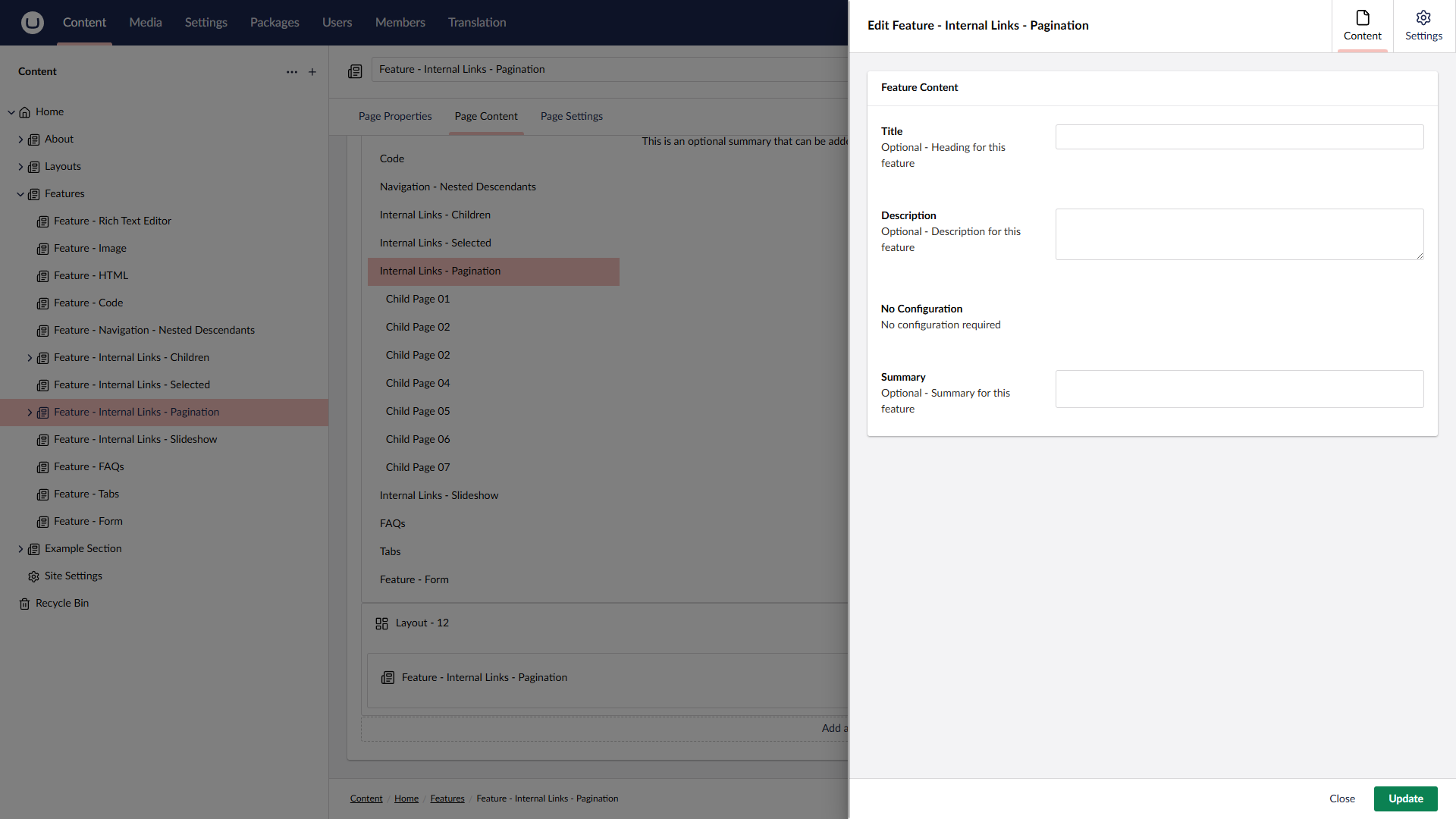 The Feature - Internal Links - Pagination is used in this case to paginate child pages